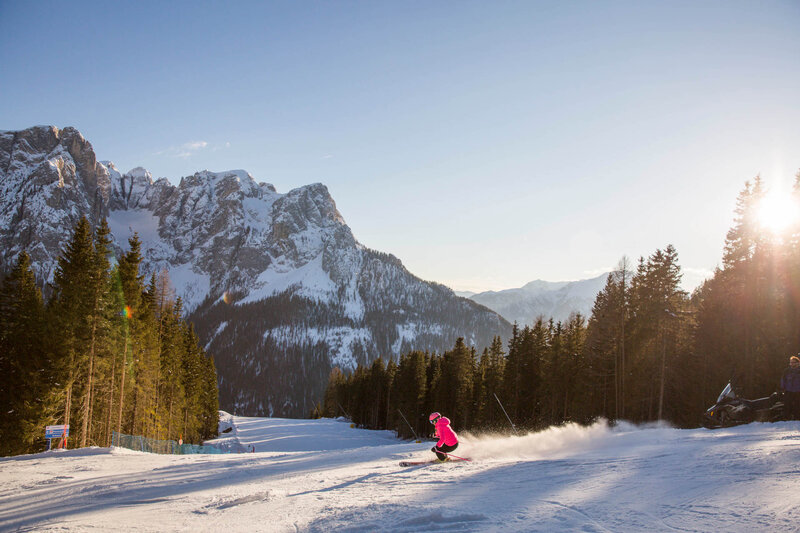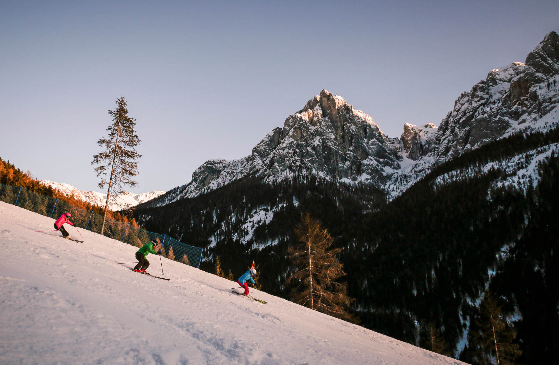 Ti accorgi subito che qui c’è profumo di energia. L’annusi nell’aria quella sensazione esplosiva che solo un antico vulcano, esattamente come la pista che porta il suo nome, sa trasmettere. Da 1.922 metri di quota il tracciato diventa tecnico, attenzione perciò al susseguirsi di muri con pendenze fino al 58% e anche al panorama selvaggio di Cima Undici e Dodici, riferimento lungo tutto il tracciato che, sul finale, ti riporta facilmente al paese di Pozza.