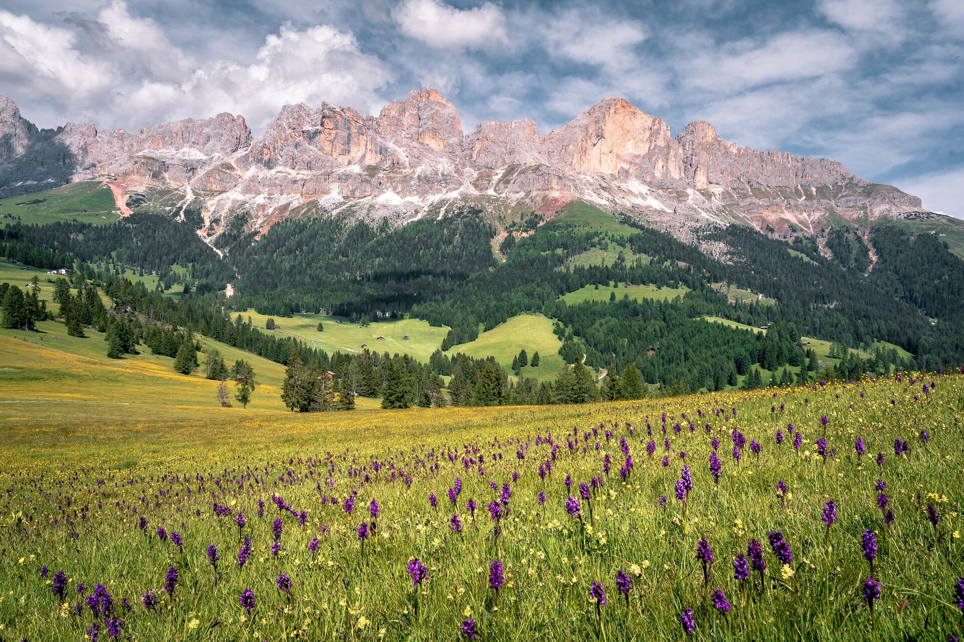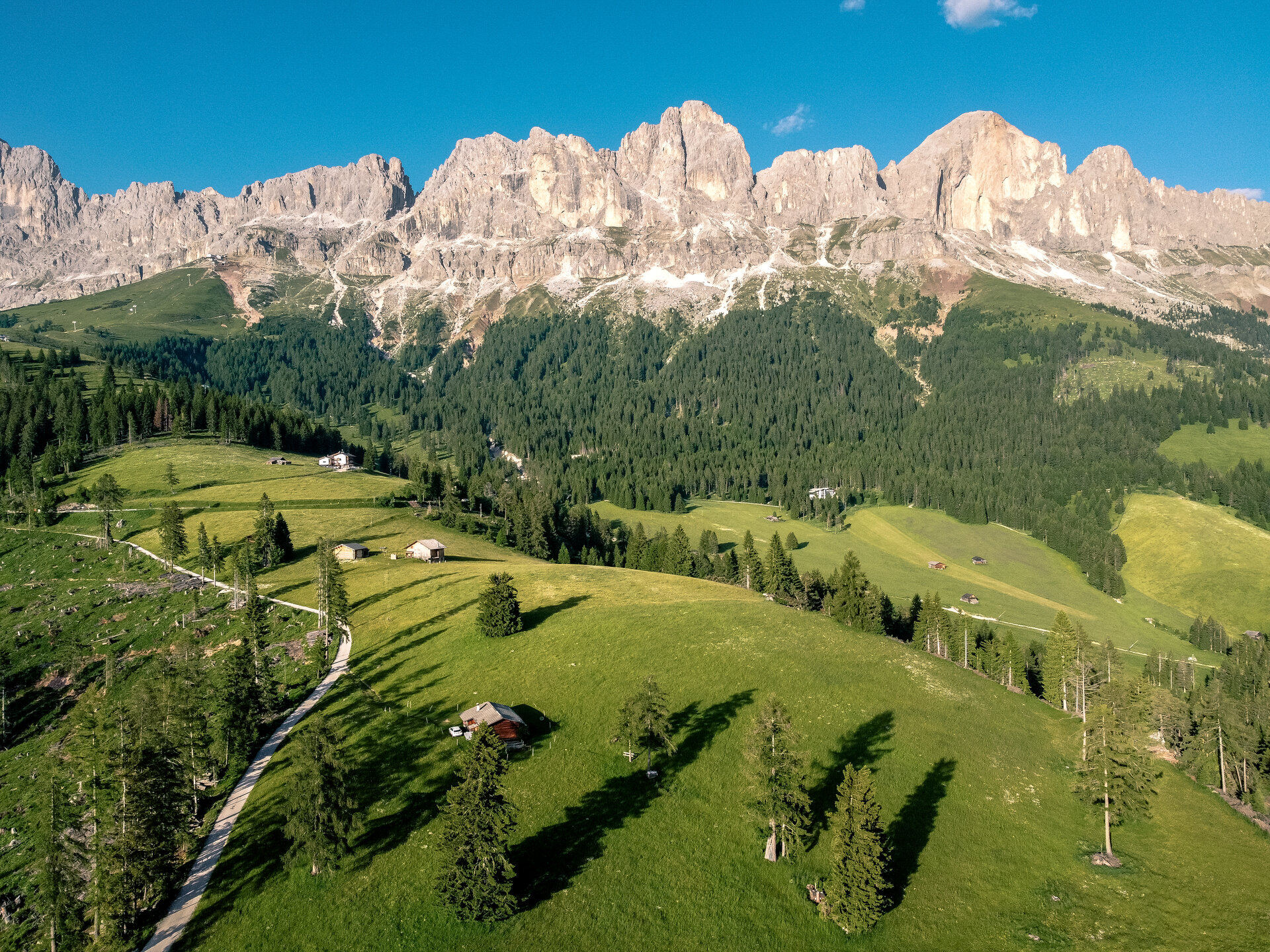 Appena superato il Passo si nasconde il lago di Carezza, piccolo gioiello dolomitico situato proprio sotto le pendici del Latemar, le cui imponenti cime si specchiano nelle acque cristalline del bacino. Guardando in lontananza noterai il Grand Hotel Carezza, imponente struttura che ospitò personaggi illustri, tra cui la Principessa Sissi, Winston Churchill e Agatha Christie, la quale scelse proprio questo luogo come ambientazione per i suoi romanzi “Poirot” e “I Quattro Grandi”.
